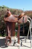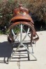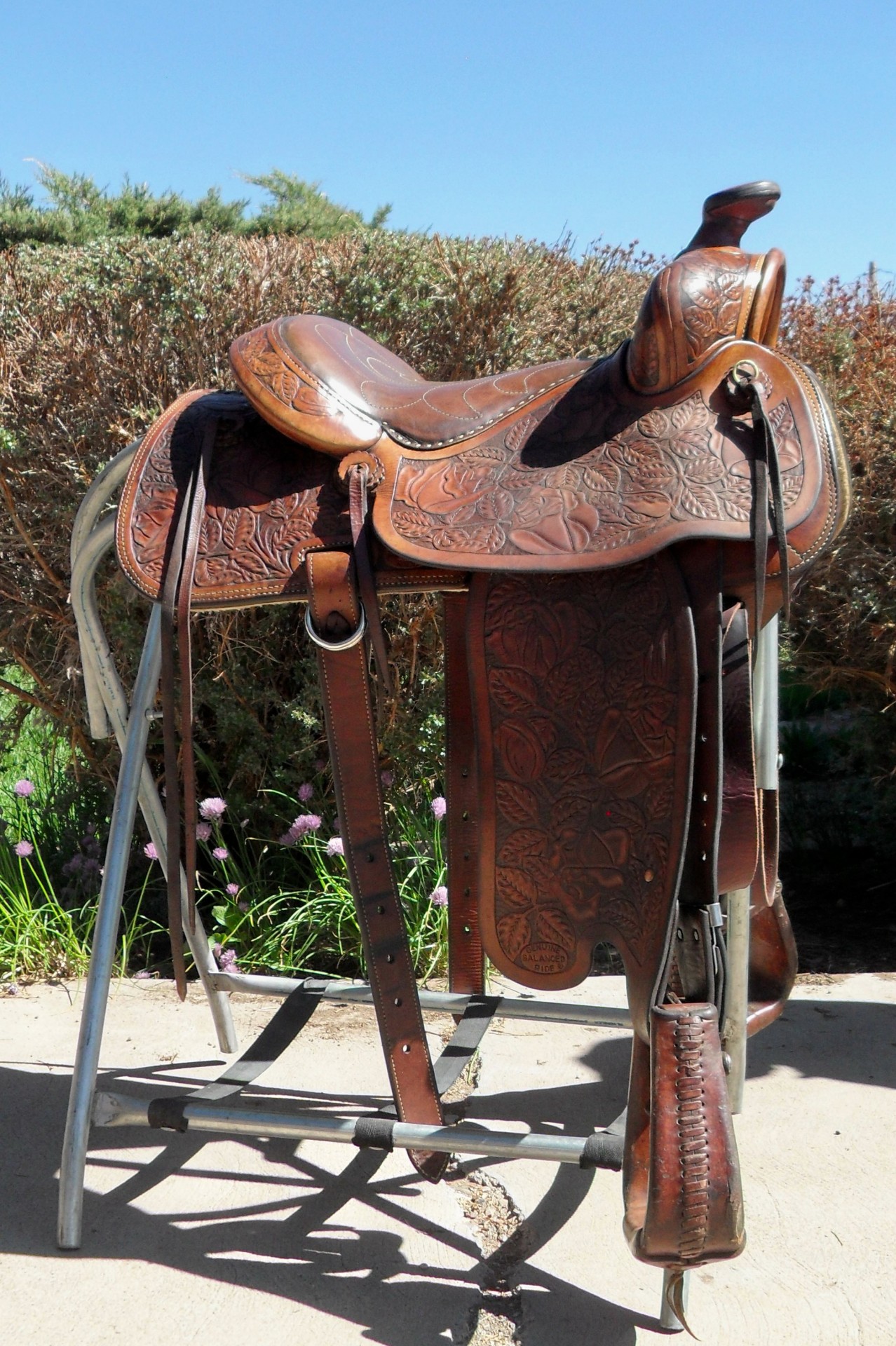 Best of material and excellent workmanship created this well cared for pre-owned Balanced Ride saddle made by FALLIS SADDLERY of Elbert, Colorado. Inspired by re-known trainer and clinician, Monte Foreman. Monte’s theory was to get the rider’s weight forward in a more balanced position plus creating more freedom in the stirrup leathers while removing much of the bulk under ones thighs which in turn allowed for closer leg contact with your horse. This new concept proved to be very successful in all disciplines---whether in the arena, show pen, ranch, trail or pleasure. Intricately fully hand carved in a Tame Rose pattern that is mighty easy to look at. Fourteen inch padded seat, 7 inch gullet, both latigos are near new, excellent genuine wool lining, weighs approximately 33 lbs. Slots for breast collar in skirts. Small tear in left fender that has been professionally repaired. According to Mr. Fallis’ 2008 price list the saddle would cost in excess of $3,000. Today’s base price is $3,800 +. Maker marked GENUINE BALANCED RIDE under right seat jockey. FALLIS SADDLERY ELBERT COLORADO on both fenders and under left seat jockey along with saddle number and patent number. Asking $1,250.00 which includes shipping.