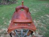 This tall cutter was made by Marty Byrd Saddle Shop in Ada, OK. It has a big 16 1/2 inch hard seat. It has a 9 inch front, a 3 1/2 inch cantle, and an overall skirt length of 28 inches. The skirts are cut out for close contact. The fenders are smooth leather and are brand new. The original fenders are trophy fenders that were made for a person that was 4’8". The saddle will come with two sets of fenders. The tooling is gorgeous. It is floral with barbed wire and big stars on the corner skirts and on the fenders. The wool is in very good condition as is the entire saddle. It has wooden, flat bottom stirrups. It comes with a back cinch but no front girth. Very comfortable! Marty has a year waiting list. This is truly a custom, handmade saddle. We only accept Paypal and ship Priority mail.