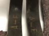A-F marked miniature gal leg spurs made by a couple in Whitesboro, Tx. I believe they quit making several years ago and have now passed. I do not remember their names, onCe knew, maybe Alfred and Fern. 2" heel openings, 1 1/2" shanks, 1" rowels, 7 /16" bands, In as found condition, which is good, could use a polishing. Very collectible pair. We pay shipping within the 48 states. We accept most credit cards, Pay Pal, money order, or check.