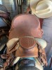 Watt Bros Wade Saddle in CO. 15 Inch seat. Rough Out seat and fenders. Basket weave tooling with matching breast collar. Front and back cinch included. Bucking Rolls. Wrapped horn. Monel stirrups. Paypal accepted. Shipping not included.