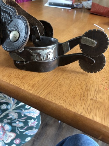 Good pair of George Blackwood spurs. Lightly used and in excellent condition with no issues. Everything is tight. They have a good pair of handmade leathers with em also. $400 shipped in lower 48. PLEASE TEXT OR CALL. Thank you