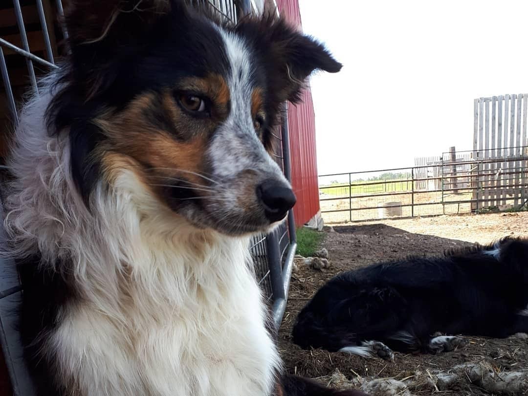 Storm-3w is 11 months old, she has a sweet temperament and listens well. Started on sheep and calves. She grabs heels, has a down, walk up and she knows her flank commands. Storm reads her stock well and is a joy to work. I’m starting to use her on small jobs out side of training and she is doing great. She has never been trained in a small pen, all her training has been done in open pastures. Storm will make a great all round stock dog. She is a pleasant little dog with lots of heart for her work.
