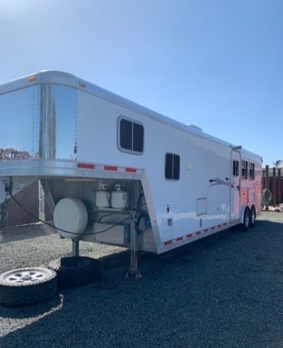 Immaculate 2005 Featherlite 11 foot short wall LQ trailer. Probably used 12-15 times since it was purchased in 2005. Fully loaded with all amenities, Refrigerator, Full bath with shower, stove, micro, upgraded interior. Dining room table that converts to bed. Drop down bunk bed.... 3 horse stalls (one stud door) with Manger and separate tack room. Drop down doors on both sides with fans for each stall. Alcoa aluminum rims with new tires. Always maintained and cleaned regularly. Loaded with a complete set of kitchen utensils cutlery, and linens. Much more just ask..many pictures avail. Ready to go down the road