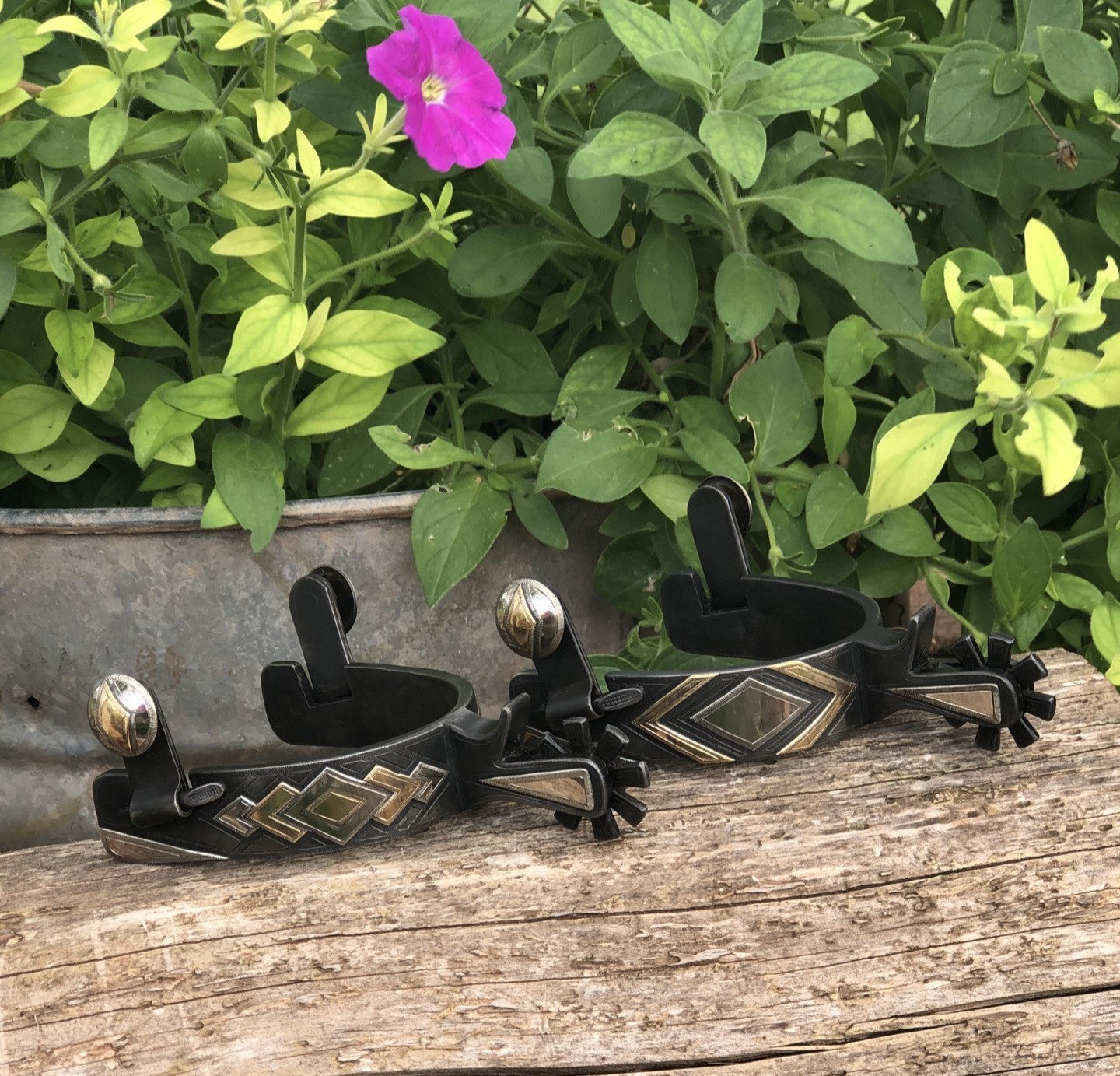 Nice Double Mounted Bronze and Silver Spurs. 1” Bands, 3 1/4” Heel Opening 1 5/8” Shank with chap guard. 1 1/4” 8 point Rowels.