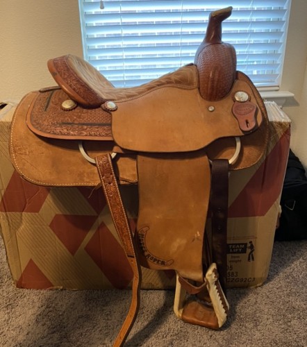 Like new condition. Saddle has less than 5 rides on it. Never been roped off. 16” seat. 7” Gullet. Total length 28”. Comes with back cinch. Really nice saddle. More photos available. Asking $600