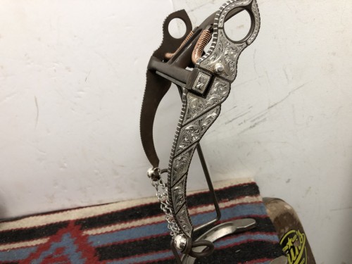 CHARLIE’S marked bit made for Charlie’s with 5 1/4" mouth, 7 1/2" cheeks, and 3 5/8" spade. Made by long time craftsmen in Mexico. Bit made to use and have eye appeal. We pay shipping within the 48 states and accept most forms of payment.
