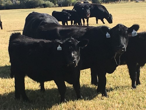 48 high altitude, home raised, one iron bred black & black baldy heifers for sale. Pelvic measured & reproductive tract scored prior to breeding. Vaccination history on these heifers will allow modified live vaccine to be used safely in future. AI’d & one round with bulls, exposed 30 days. Start calving March 5. Bred to excellent low birth weight, low pap bulls. Have had first pre-calving shots & poured.