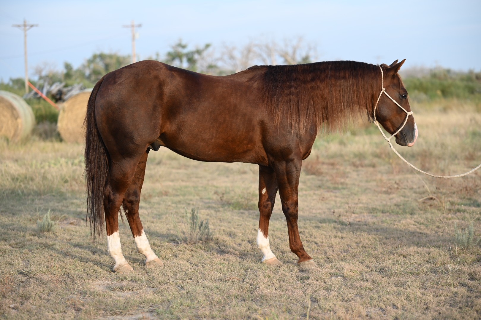Gorgeous son of Metallic Cat out of one of the best Shining Spark daughters, Lil Shiny Long Legs. He is currently being hauled for barrels and heeling, he is a great ranch horse also! He is super quick footed and easy to train.