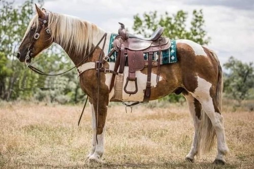 8 year old 1/2 draft paint horse I would say around 16 hands. Bought this horse as "sound" to use just moving cattle and light ranch stuff. Turns out he has navicular and I just got screwed so need him gone. He is broke wears a hackamore or snaffle I’ve been told. The lady used him for beginners to trail ride on. I paid $5000 so just trying to get some money back. Let me know if you have anymore questions. The first day I got him hopped on him bareback no issues