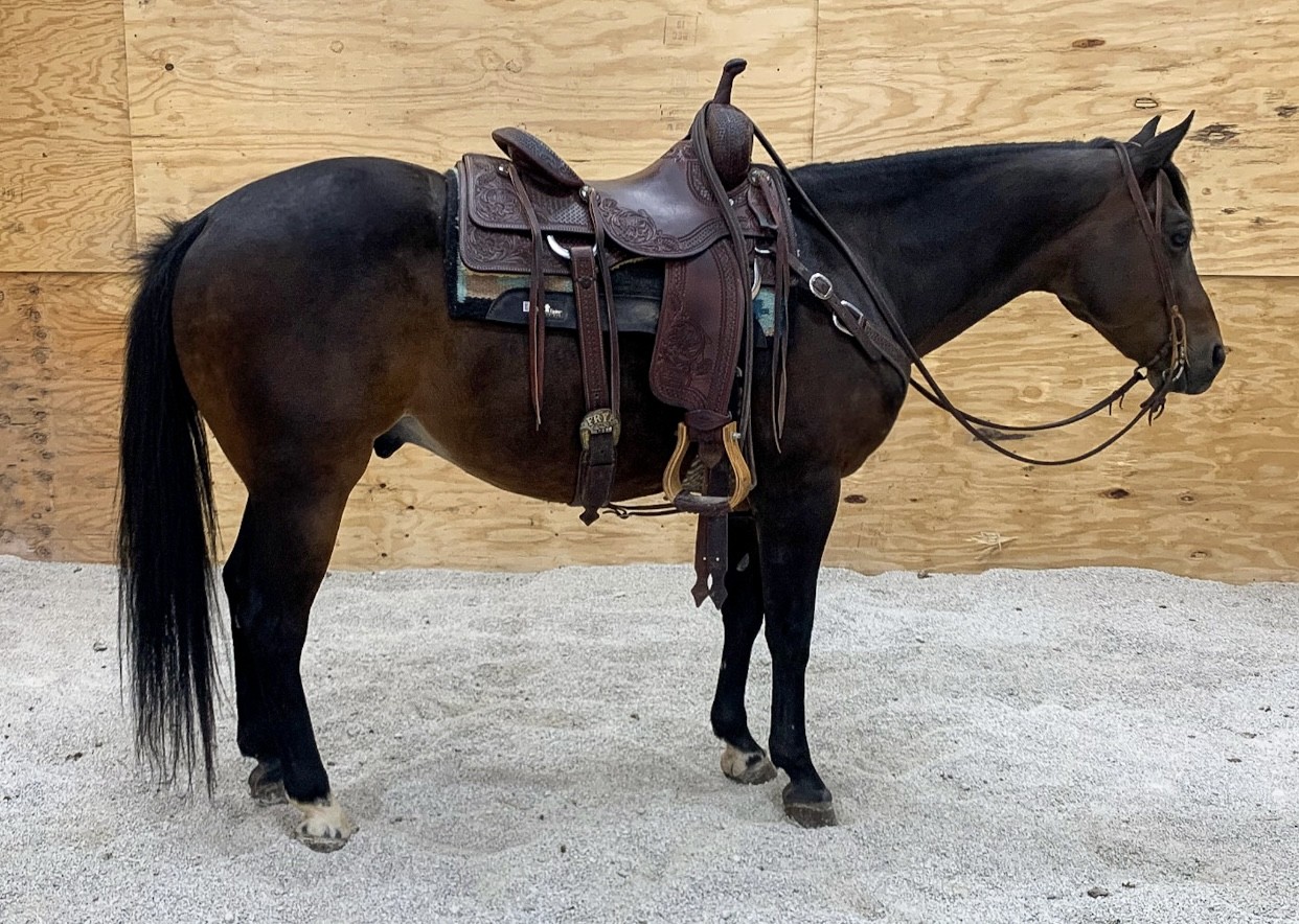 Naturaly Brown Bucks is a jam up heel and breakaway gelding. He’s been to the All Star, World Series, big jackpots, and rodeos. He’s in shape and ready to go win you a check. He fits a number 8 heeler. Good in the box. Not blown up. He will spin a hole in the ground and big slide stop. He scores great. He will rate a slower steer or put you in the money for a fresh one. He’d be a good college rodeo mount or any guy wanting to win at the big shows. He’s 14 years old, 14.2hh, and 1050lbs.