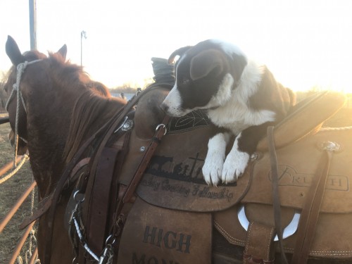 Red border collie. Male, still intact. Around 20 weeks. Out of working parents. Started on chickens, shows a lot of potential