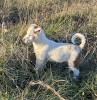 Sire has a longer medium coat. He is a red Merle with blue eyes and the female is Black and White short coat.