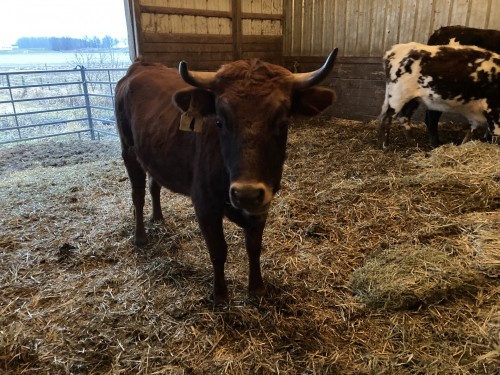 Indiana. June 2019 heifer 575#. Lightly roped goes through chute and exits catch pen and return alley with ease