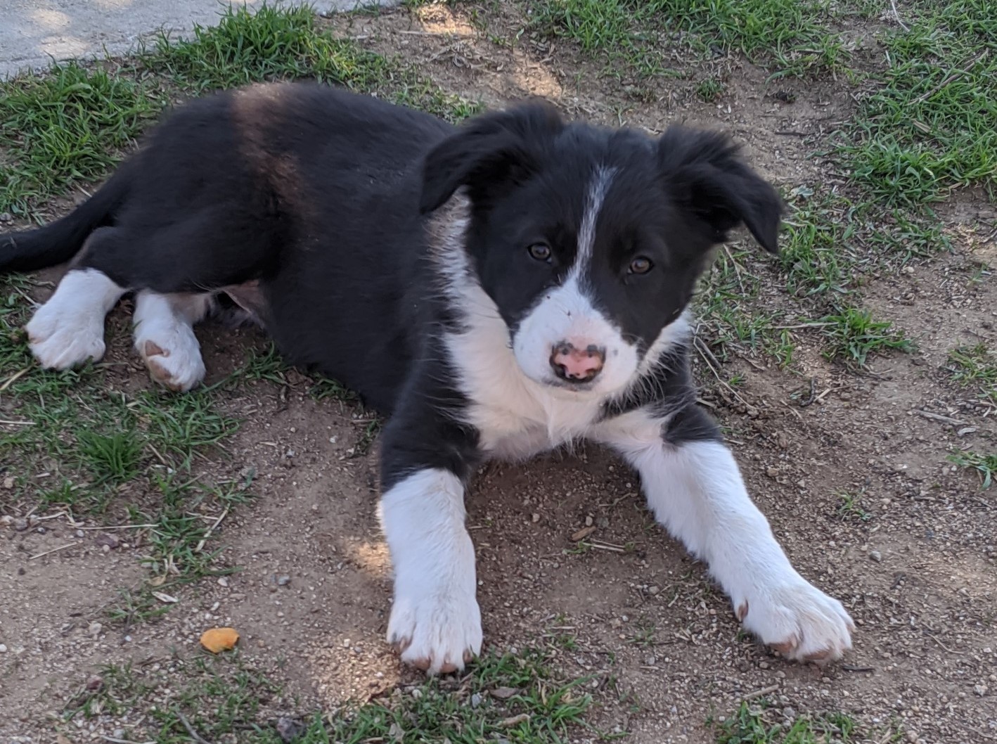 Born 12/19/2020, puppies have received first deworming treatment and first set of vaccinations. All puppies have black coats with white markings. Puppies will be registered with ABCA as a litter.