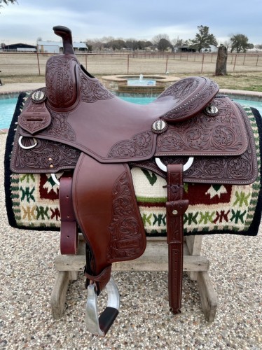 Stunning brand new Ruelas ranch cutter. Beautiful tooling. Top made saddle by R. Ruelas who is the same maker/shop and materials as Sean Ryons.