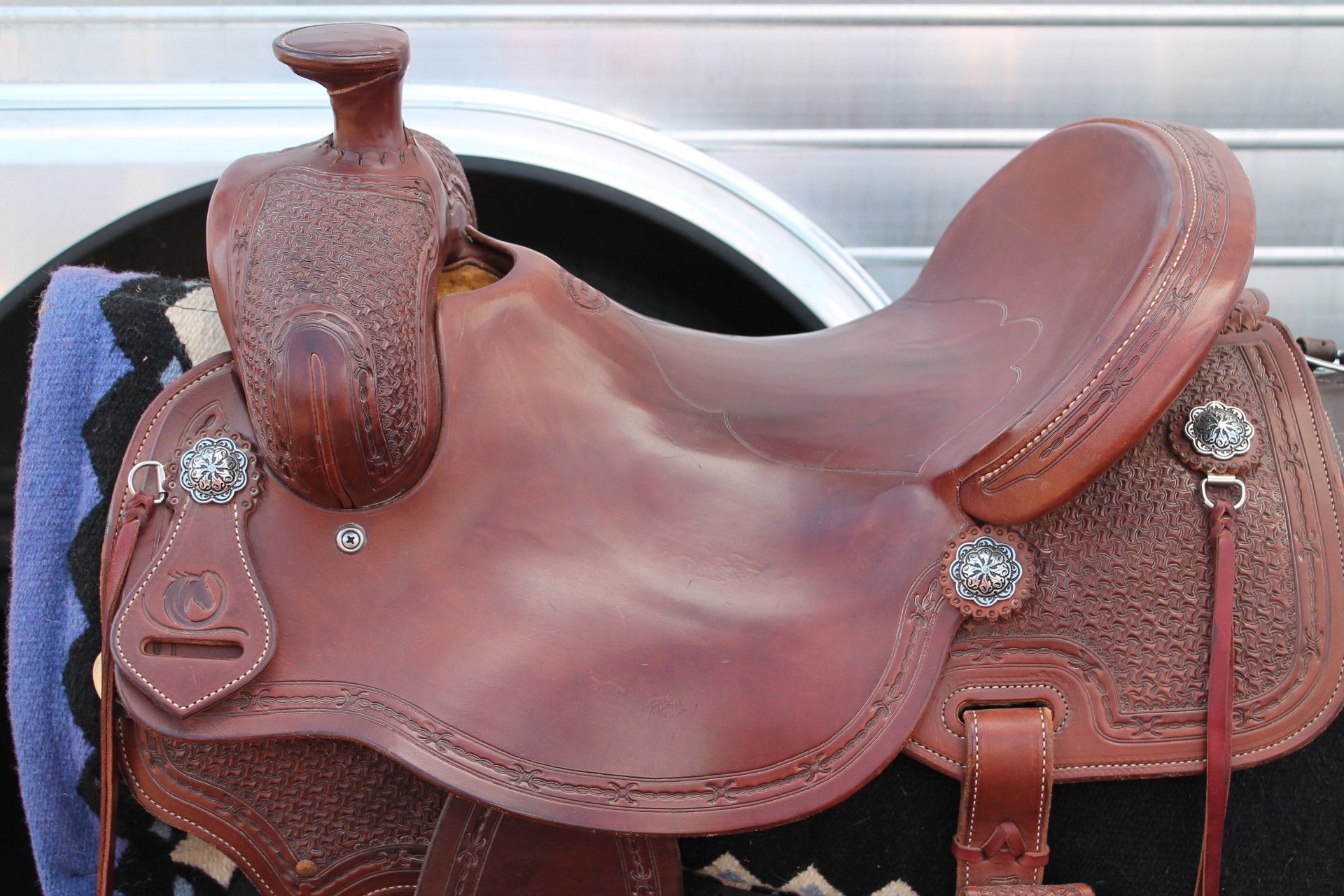 Light weight fancy ranch saddle. FQB 16" seat. Go to JAYSCUSTOMLEATHER to see his work. 26" full length. 27#. Includes rear girth and aluminum stirrups. Buyer pays shipping.