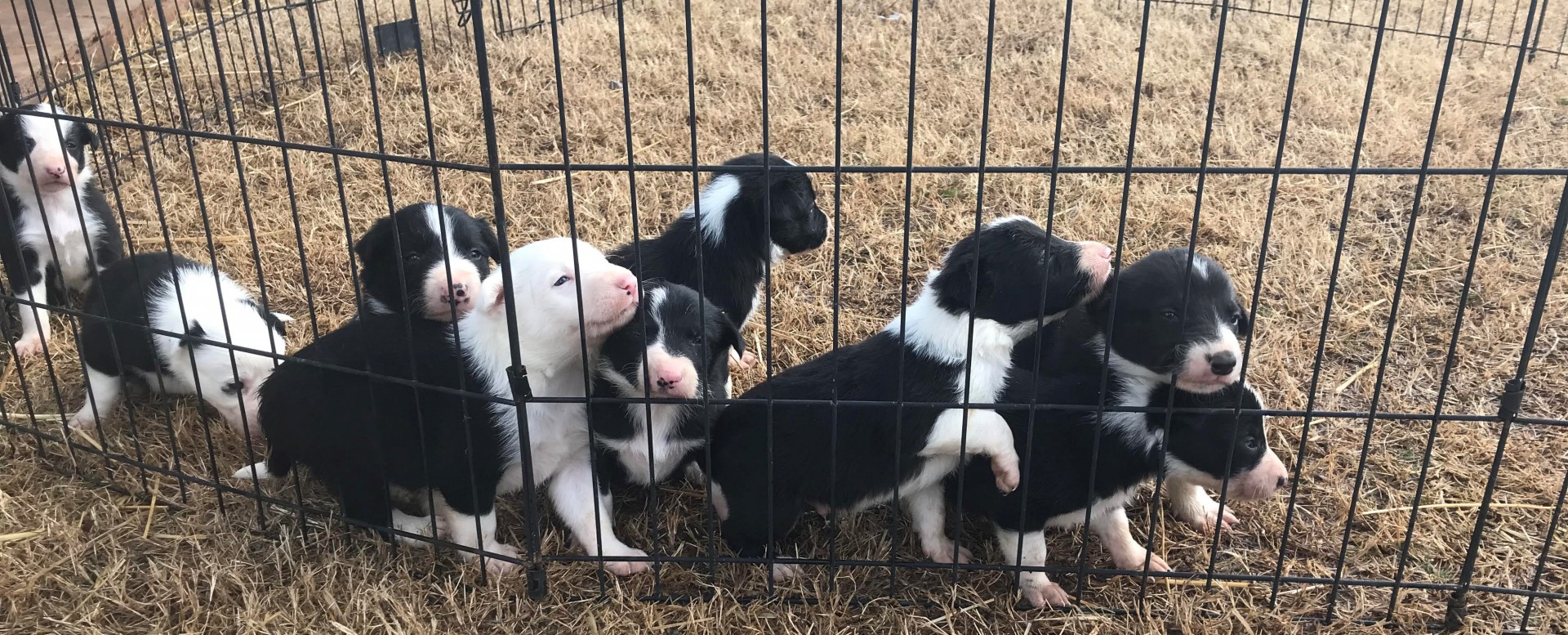 5 week-old Border Collie puppies ready to go, 5 males and 5 females. Parents used daily on a stocker operation. Used extensively to gather wheat cattle. Parents bite both ends, mainly used as fetch dogs but can drive also.