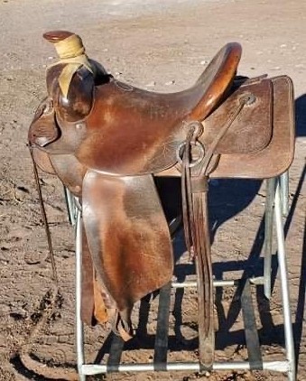 Used but not abused. Hamley Modified Low Association. Warren Wright Tree. 14 in. swells 3 1/2 x 3 duckbill horn. Sits close to a horse and great to rope out of. Comfortable to ride all day. Lots of life left in it. Cary went through it and cleaned and oiled it last summer. Good solid saddle. Stirrups and cinch not included. Able to provide more pics upon request.