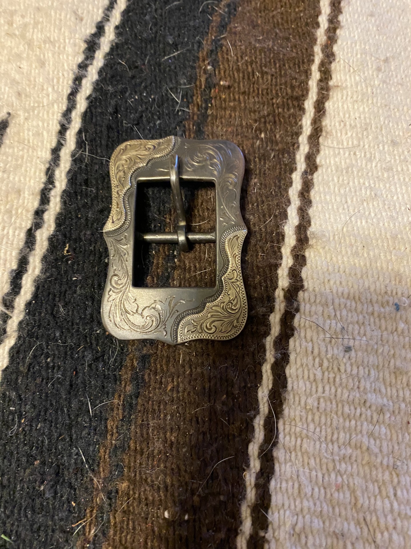 Gary Wiggins 1” headstall, belt, chap etc buckle. New. $125 shipped in lower 48. PLEASE TEXT OR CALL ONLY. Thank you