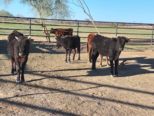 A nice set of solid colored corriente heifers. They should be ready to team rope this summer. Could be used for break away now.