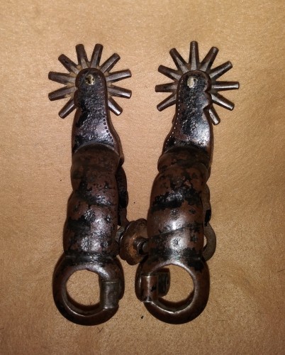 Vintage Buermann made spurs known as Dom Pedros. These old spurs were made in the early 1900s. They are in good condition with some of the original finish still on them. The old straps were on the spurs long before I got them about 40 years ago. I have collected Western, Cowboy and Buckaroo items for 50 years and decided to sell my collection. Please call or text me if you have any questions. Bob