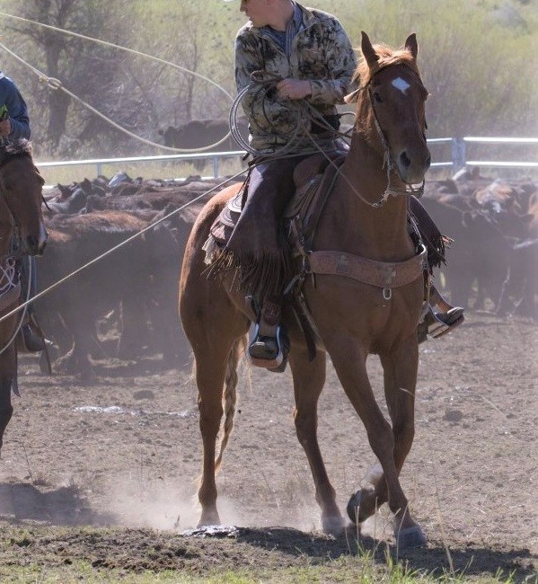 2008 model do anything type of horse. This gelding came from the Bentz Spur Brand breeding program in Juntura, Oregon. Since that time he has seen the miles outside as well as in the arena. Been roped on in rodeo, jackpot and World Series settings. Scores, runs hard and faces. Unfortunately, the AQHA papers were lost by the previous owners so this horse will sell grade (but was registered). He is by a King Fritz stud owned by the Bentz family. Absolutely no buck and requires no maintenance. If you are looking for your next head horse or something to ranch on, this horse is worth a look. Any level of roper. Honest, safe and sound.