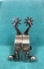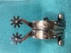 1 7/8" shanks and 1 1/2" rowels. The 1" bands have a 3 1/4" heel opening that can be adjusted. Buyer pays shipping. PayPal and most credit cards are accepted.