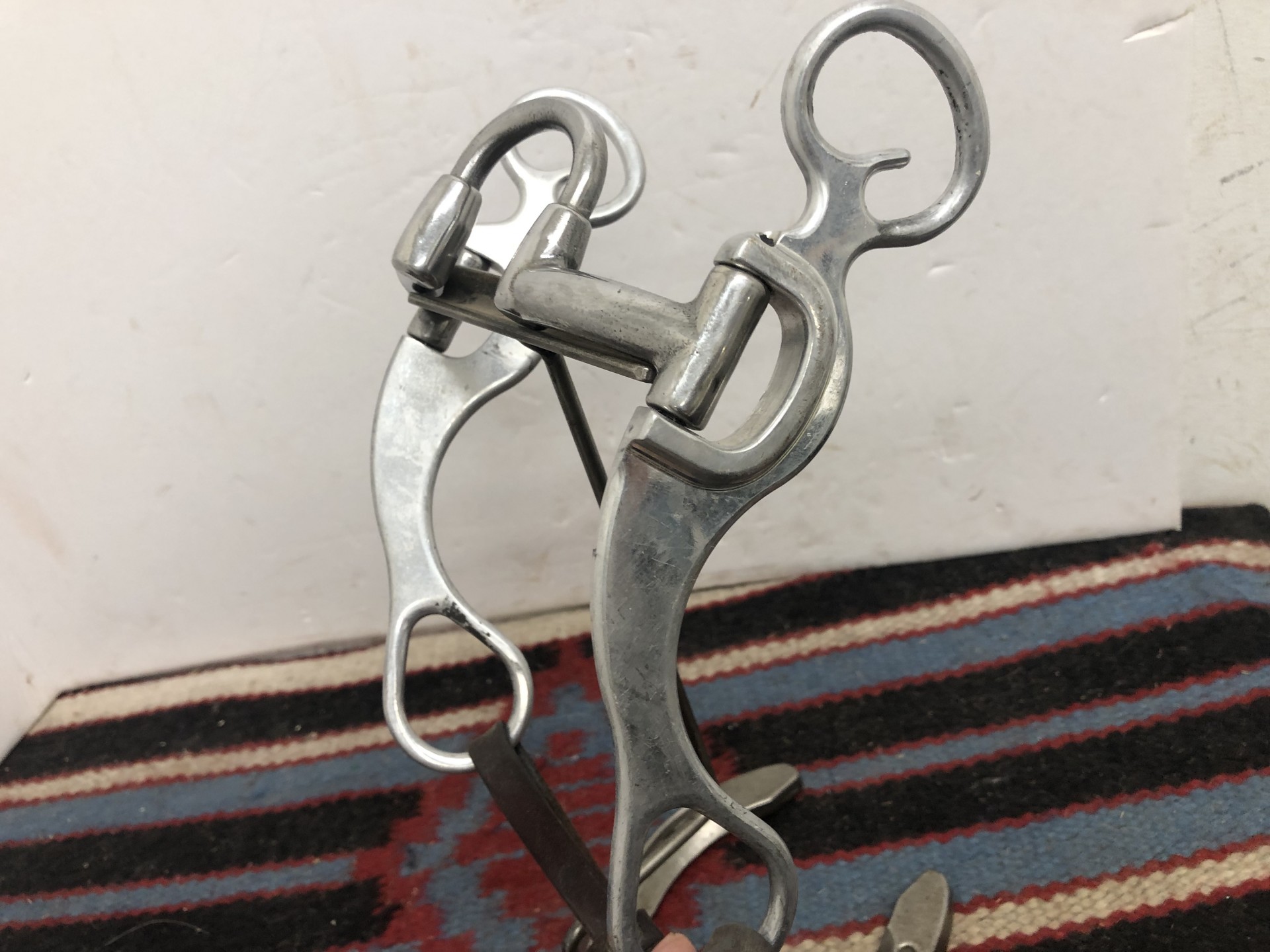 Bit is good and tight, has some scratches, but not much use. Very popular horseman’s tool. 7 3/8" cheeks and 5" correction mouth. Made in America. We pay shipping within the 48 states and accept most forms of payment.