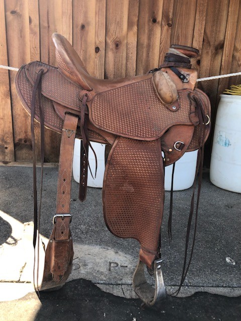 15 1/2 seat, 7/8 rigging, made by Todd Fersetta, basket stamped, very comfortable saddle. Call with any questions! No texts accepted.