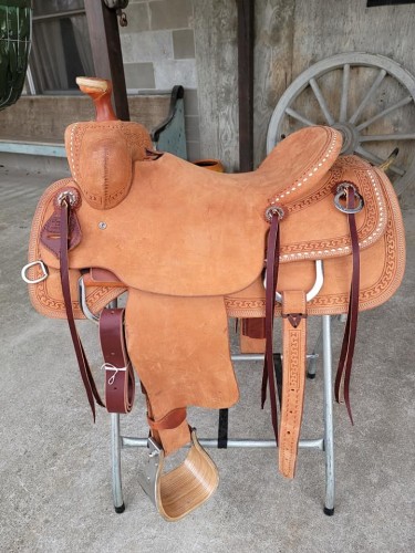 New 16" Robert Teskey Elite rancher, full roughout with buckstitch, close contact, cowboy swell, made for everyday work with eye appeal, super cool saddle!