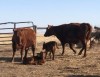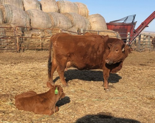 40 hd of Red Angus, 6-9 yr old cows with March babies at side