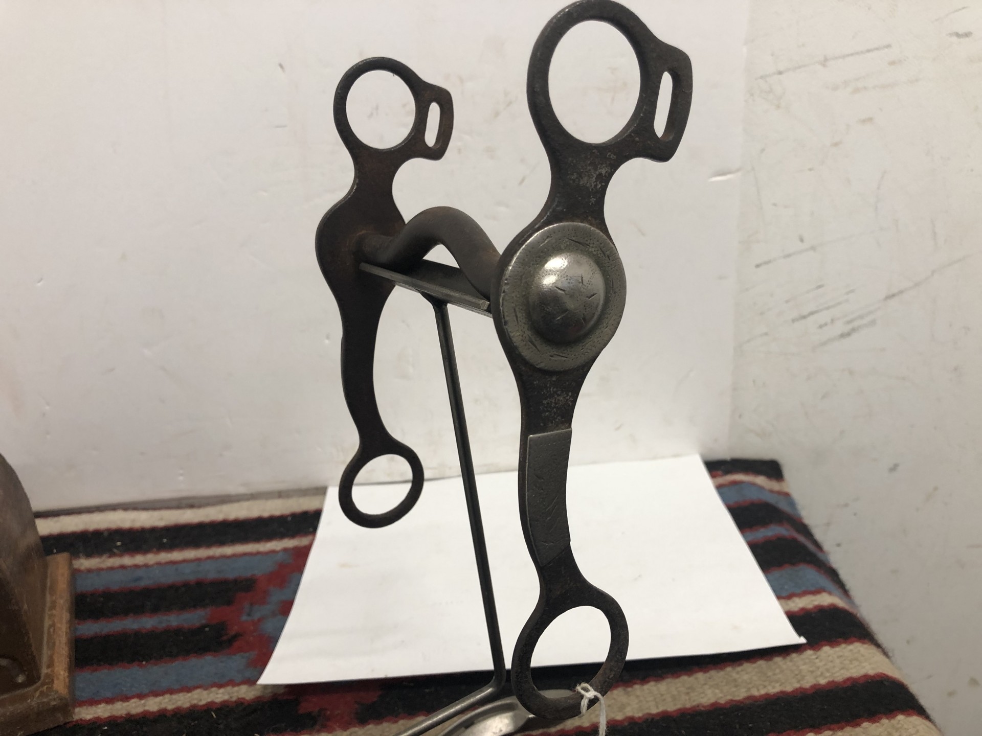 Vintage CROCKETT marked bit with 7 1/4" cheeks and 5 1/4" mouth. Mountings tight and original.