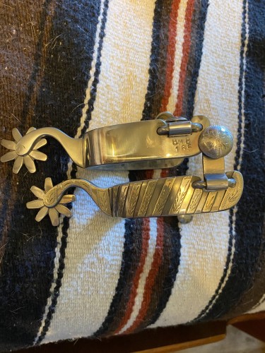 Sharp pair of Brandon Bradley spurs. Newer maker that’s coming on strong. This is a nice pair. $600 shipped in lower 48. PLEASE TEXT OR CALL ONLY. Thank u