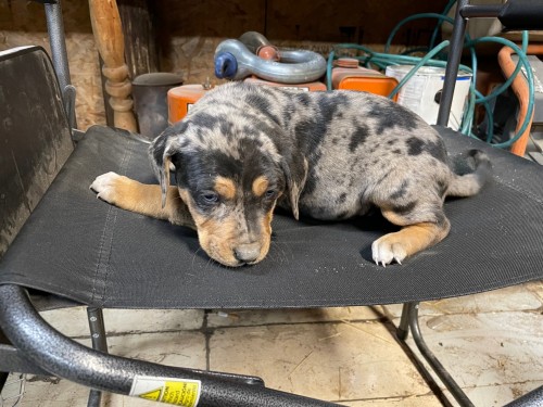 Catahoula Puppies born 14 Apr. There are 2 boys and 2 girls. All puppies will have their first set of shots and dewormer. Mom and Dad are both pure Catahoulas (last photo is mom and dad) and can supply papers for both.