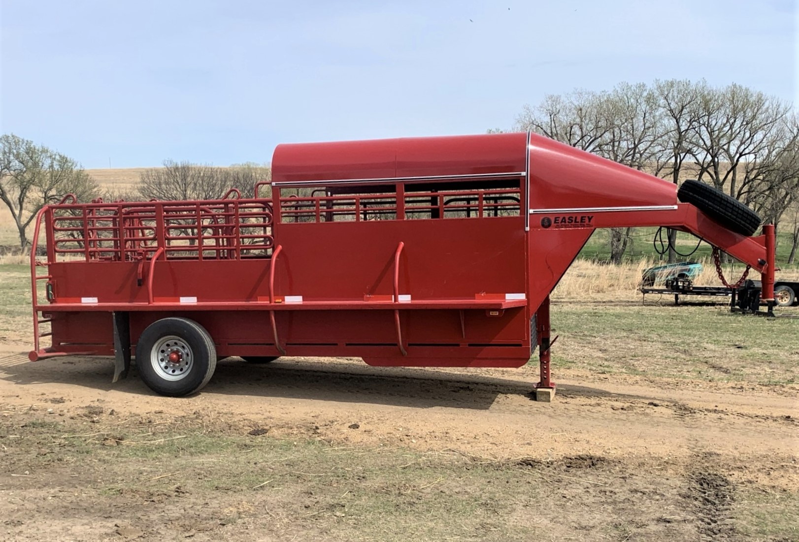 Sliding rear gate. Gate in a gate center gate. Calf gate. Rubber floor. Receiver hitch. 8k axle. 16 ply tires. Always shedded