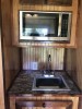 Living Quarters~ Shower, sink, mini fridge, microwave, two electric outlets. Double size memory foam mattress. Lots of lights. Closet and cabinet space in front of bed. Custom real mesquite wood trim. Curtains. 13500 BTU ac and heater. Hot water heater and storage tank. Brand new never used compact port a potty. Perfect for weekend getaways and clinics! Plug in or bring generator. Hook up for water. ADDED HYDRAULIC JACK. Horse compartment~ First stall escape door with ADDED STUD DIVIDER. Drop down windows front with bars. Drop down widows rear or use screens. 4 roof vents. Rubber mats rubber lined front and kick wall. Butterfly doors on rear with ADDED RAMP. Collapsible rear tack with removeable 4 saddle rack. Bridle hooks. Blanket bar and added hanging bar in front of horse compartment. Hay rack, tie rings inside and out. Added lights on head side and rear load light. ALL slant dividers and front stud divider are removable making this a VERY versatile trailer. Hard to find one set up like this. Haul the horses and a toy or two if needed and great for moving.