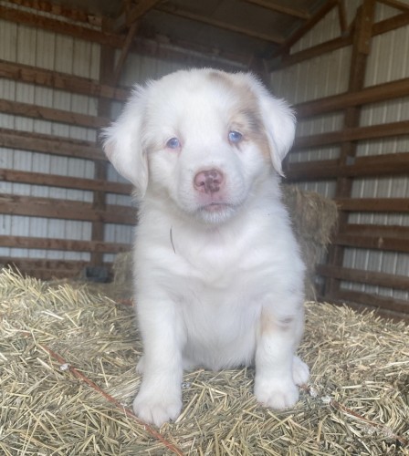 Red Merle Male #3. He has been vet checked and is up to date on shots and worming. He’ll be ready to go to his new home on June 5th. Very good and smart pup. He is part of our best litter that we’ve ever had! The mother is an extremely good working cattle dog, she is the best dog my family has ever had. The father also spends time working cattle daily at the ranch. Feel free to ask for more pictures of him or of the parents! Please TEXT 308-737-7662 for more about him!