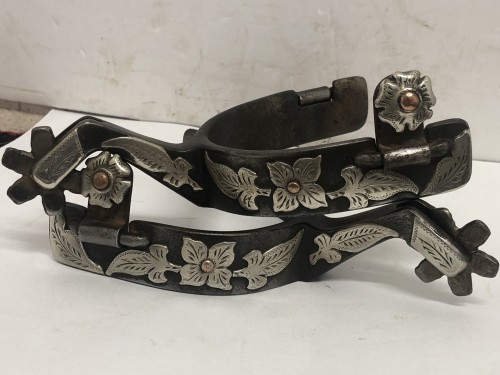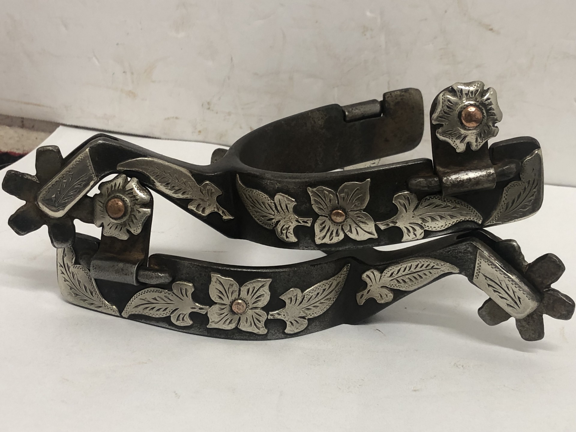 Handmade Bits & Spurs for Sale: KLAPPER 78 FLOWER MOUNTED SPURS SOLD #136076