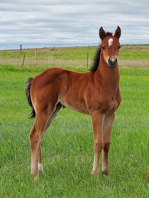 All around performance prospect. “Maggie” is a bay filly with a star, snip and white on both her front and rear left. This one is a bit special because her mother was our very first Paddys Irish Whiskey daughter. We acquired her from Wylie Gustafson of Cross 3 Quarter Horses. We have always owned several Paddys Irish Whiskey sons and her dam, Magnolia Whiskey, is one of four daughters we now own. Magnolia Whiskey aka Rio is a point and money earner by Paddys Irish Whiskey. Rio has earned 14 AQHA pts. in heading and heeling. She qualified her 1st year of roping for the 2018 AQHA World Finals in JR Heeling where she placed in the Top Fifteen. She is a stout built mare with the athletic ability to really shine. We have also shown her in reined cow horse a bit where she placed 1st in the North Central RCHA 5 YO open class earning her $60 but heeling seemed to be her “thing”! Rio stayed sound and showed us her ability, so we decided it was time for her to have a baby for us.