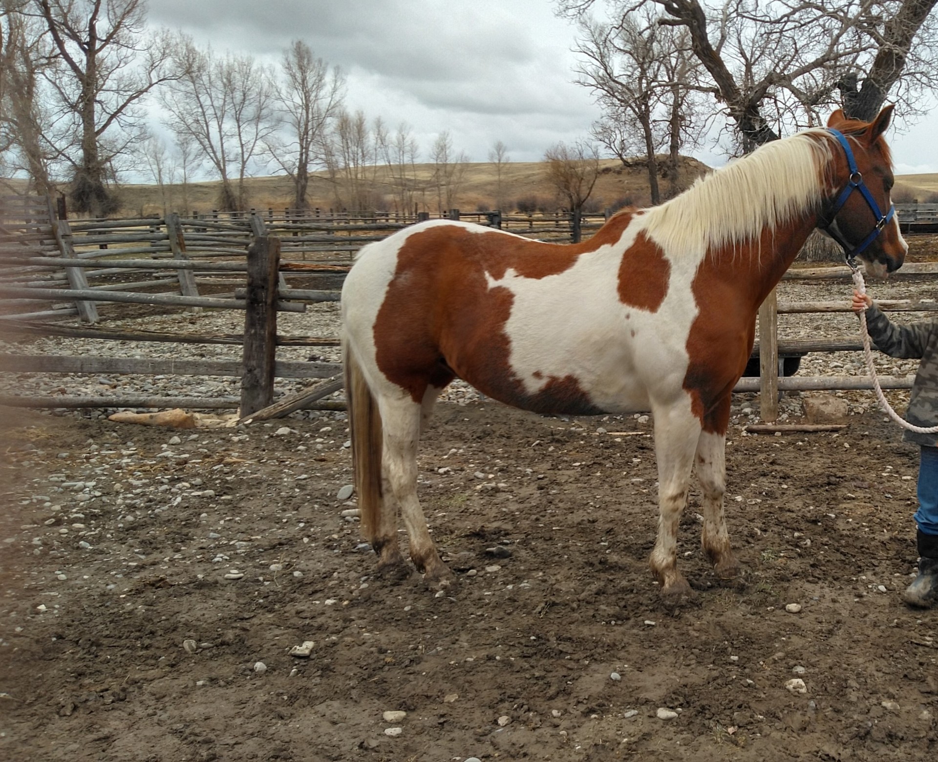 "Cowboy" is a registered 18 year old paint gelding. He has that eye appeal and sweetness to go with it. He is a been there and done that type of horse. He has been used on the ranch since purchasing him 6 years ago. He has pasture doctored, drug calves to the fire, roped bulls... Requires an intermediate to experienced rider. He has never offered to buck but is a bit spookish at times. He is better with women than he is with men. He stands good for the farrier and was recently trimmed. He has been vaccinated and wormed in the spring and again in the fall since purchasing him. Asking $2,500.00 OBO. Contact Brandon at 406-537-4550 or 406-930-1498.