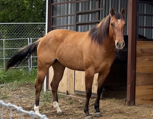 Bella is a gorgeous 2018 dun mare that is out of a Playgun stud with Peptoboonsmall on the bottom. She is easy to get along with, has been taking the training very willingly and has absolutely no buck, bad manners etc. She has been worked on the cows and flags. She is a great NCHA prospect, NRCHA, all around prospect. She is currently at SDP Buffalo Ranch in Fort Worth and you are welcome to come try her.