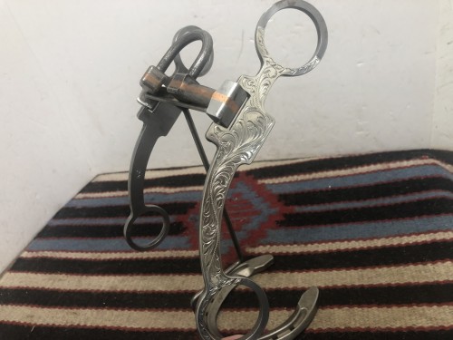 KG marked by long time maker Kenny Giannini of Arizona. Features overlaid hand engraved silver 8.25" cheeks and 5" correction mouth with copper inlays. His bits ride and work good and are used by some top horsemen. We pay shipping within the 48 states. We accept most forms of payment.