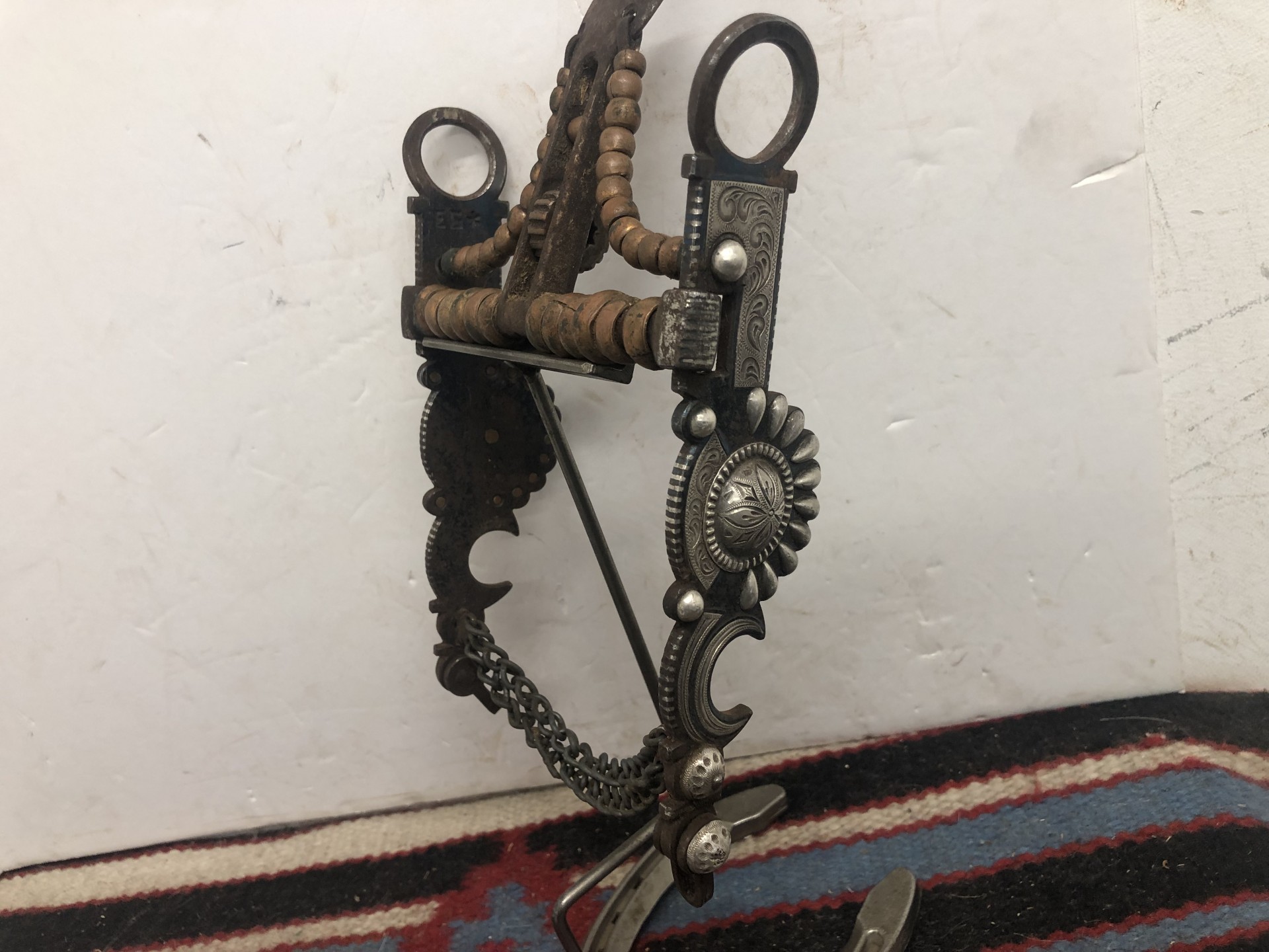 I would date this one in the 1960’s. It has seen limited use with much of the original blue still on it. Marked EG* Mexico, Abby Hunt style with copper rollers on the mouth and braces, 5" mouth, 4.5" spade, 7.25" cheeks. No issues. One of the best I have ever seen. We pay shipping within the 48 states and accept most forms of payment.