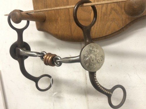 p^ 181 marked bit in unused condition by noted maker Pat Vaughn. Very popular style with 6 1/4" cheeks and 5" mouth. Very nice using bit by a top maker. We pay shipping within the 48 states and accept most forms of payment.