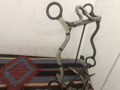 BULL marked bit by long time maker Bull Parker of Kansas. Very popular style of his with 8 1/2" cheeks, 5 3/8" mouth, and copper inlays in the port. We pay shipping within the 48 states and accept most forms of payment.