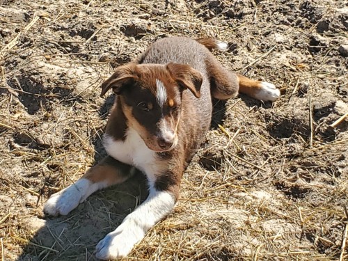 Parents have excellent bloodlines, work both ends, are very heat-tolerant, can take lots of miles, and are used!! Pups are pretty and have beautiful markings, with great personalities (not timid). They are already hanging on pant legs, working the broom, and herding the chickens!
