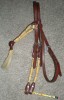 Here is a NEW Western Leather and rawhide bridle / Headstall with a futurity knot horsehair tassel browband. Fits any standard horse. Nice Quality and very pretty!!