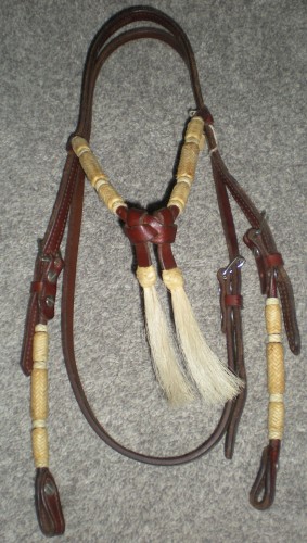 For Sale: Rawhide Wrapped Horse Bridle Headstall Horsehair Tassel SOLD #142662