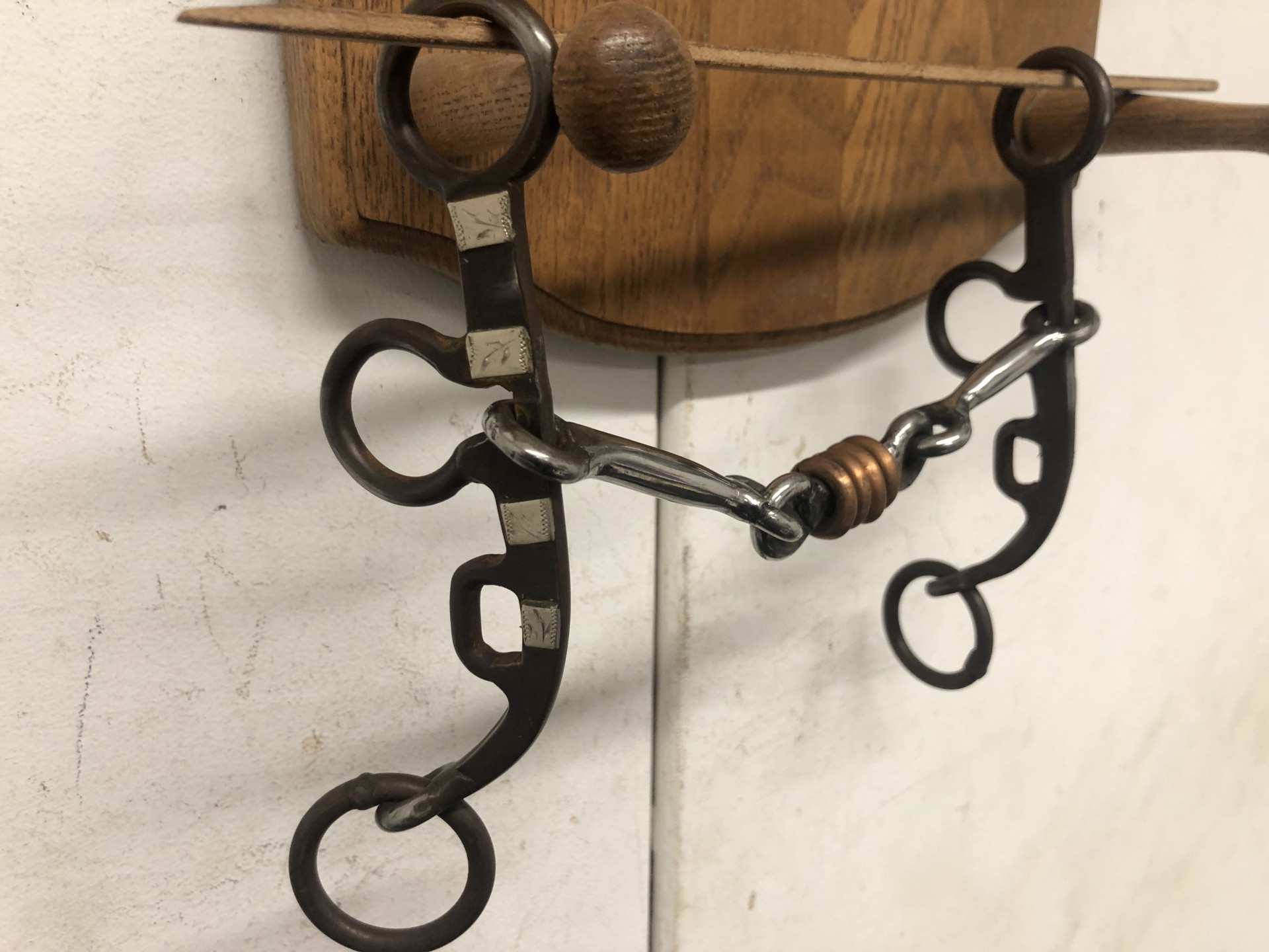 Robert Evans made bit marked EVANS, in unused condition with 5 1/4" mouth and 4 7/8" cheeks. Handy dog bone Argentine style by a maker from the south plains of Texas. We pay shipping within the 48 states. We accept most credit cards, Venmo, Pay Pal, mo, or check.