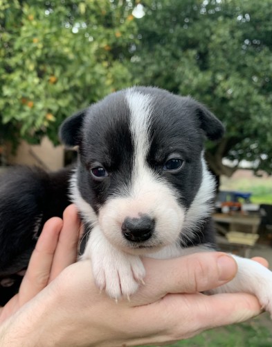 Border Collie pups born 12/22/21. Mom is from a local breeder with cattle working dogs but not AKC, dad was a neighborhood border collie mix who arrived unannounced. Both parents have good temperaments. Mom is a great gopher hunting dog in the orchard, likes to ride in/on equipment, likes to share her opinion, and knows how to open most of the doors and windows in the house. Smart! Mom is petite with a smooth coat, dad was medium build black smooth coat with a white chest. We have 8 puppies, 2 females, 6 males. They should be ready to go in 3 weeks. Call or text 2092625744
